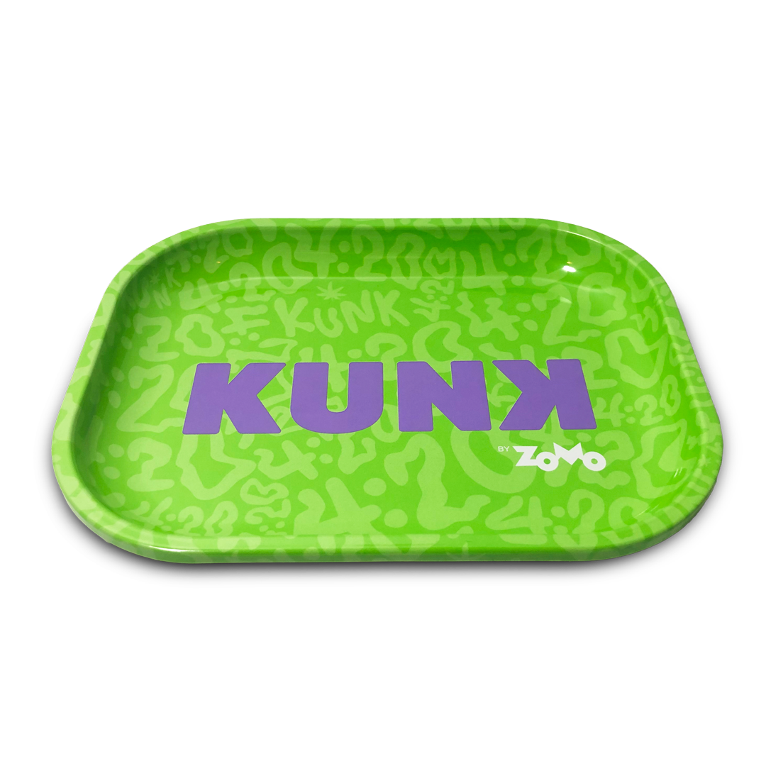 As bandejas de metal da Kunk são top! Feitas de alumínio firme, elas são super estilosas e ajudam a manter tudo organizado sem caos. São vários tamanhos e designs para você escolher, garantindo resistência e praticidade no seu rolê.